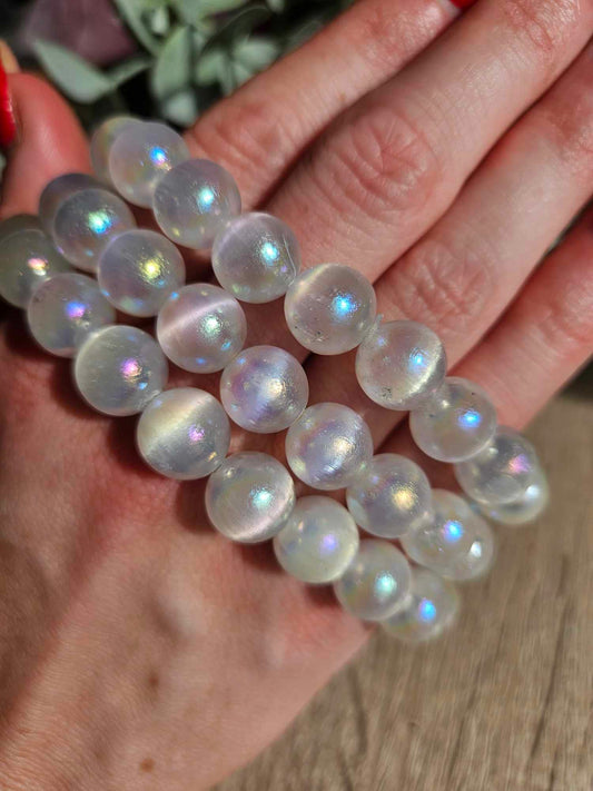 Aura Selenite Bracelet 10mm – Cleansing Crystal Bracelet for Light, Clarity & Energy Purification