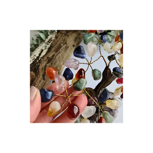 Each handcrafted tree is made with natural crystal chips that radiate healing energy, support manifestation and bring balance into your home or sacred space.