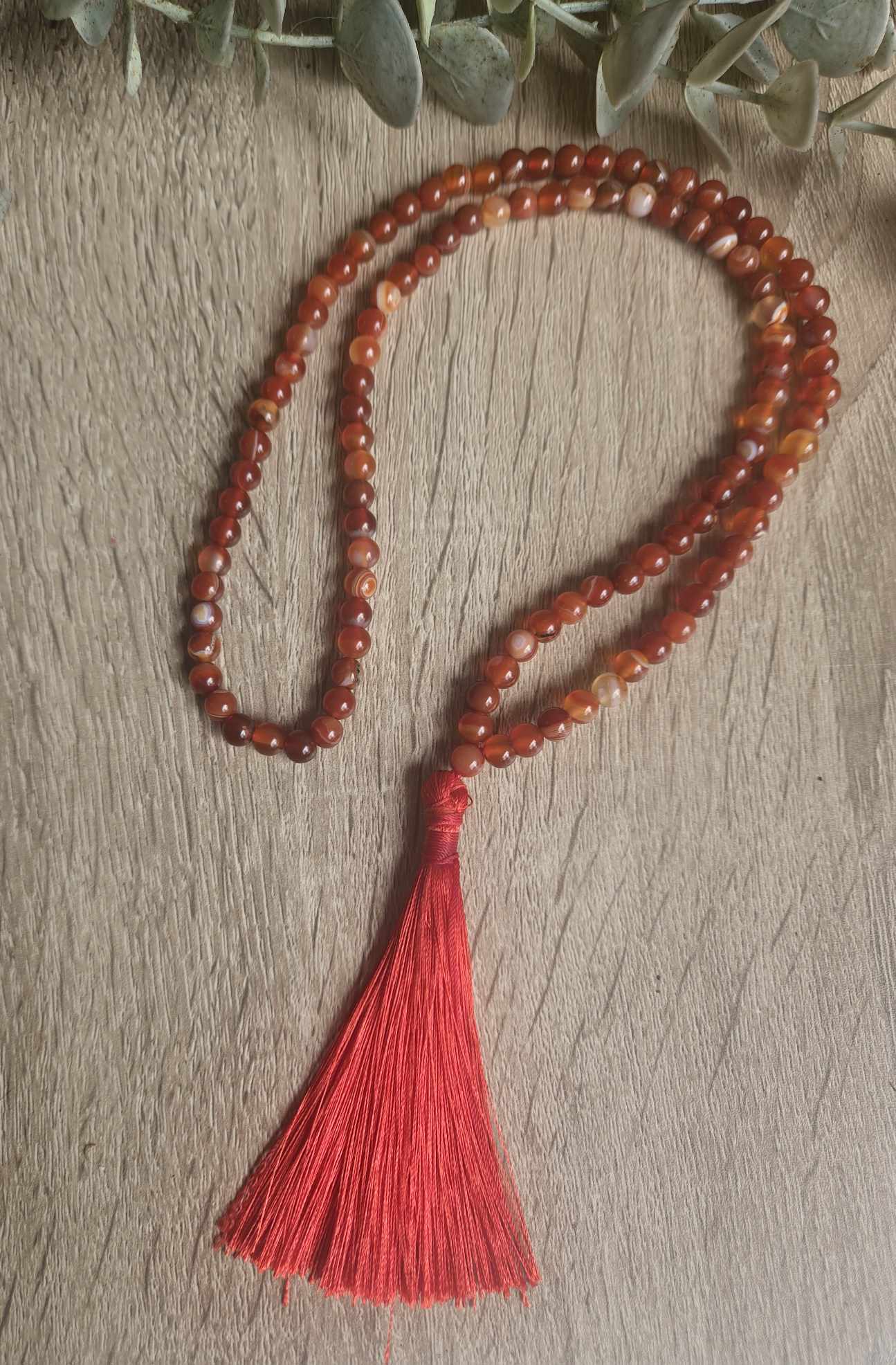 Carnelian Mala Beaded Necklace – 108 Hand-Knotted Stones for Energy & Confidence