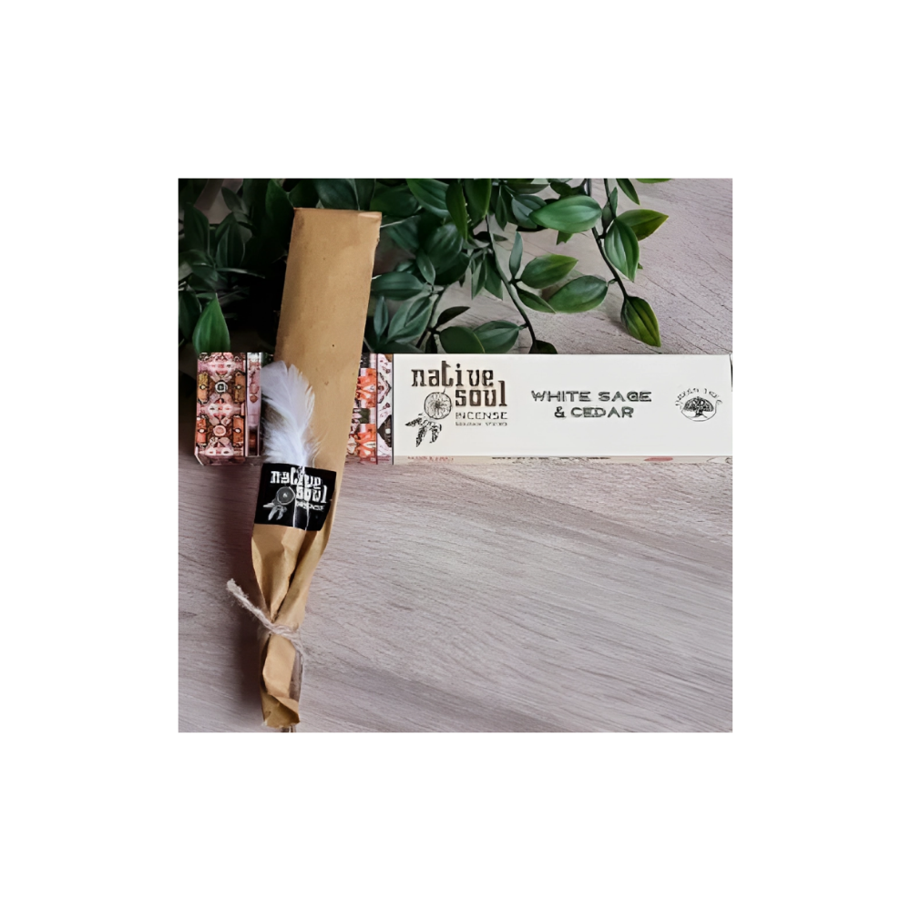 Native people have been using both white sage and cedar for hundreds of years as sacred plants. They burn the dry bundled leaves of white Sage during their purification ceremonies and healing sessions to cleanse a space or person of all evil spirits or negative energies. Cedar, a resinous aromatic tree, has also been used for cleansing rituals and healing rites. It's smoke is said to attract the good spirits and eliminate the negative energies. Fresh earthy white sage combines in these sticks with the sweet herbacous scent of cedar to protect, purify and to draw positive vibes.