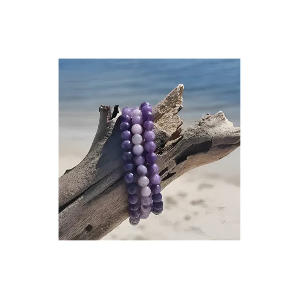 LEPIDOLITE 6mm CRYSTAL STONE BRACELET.
