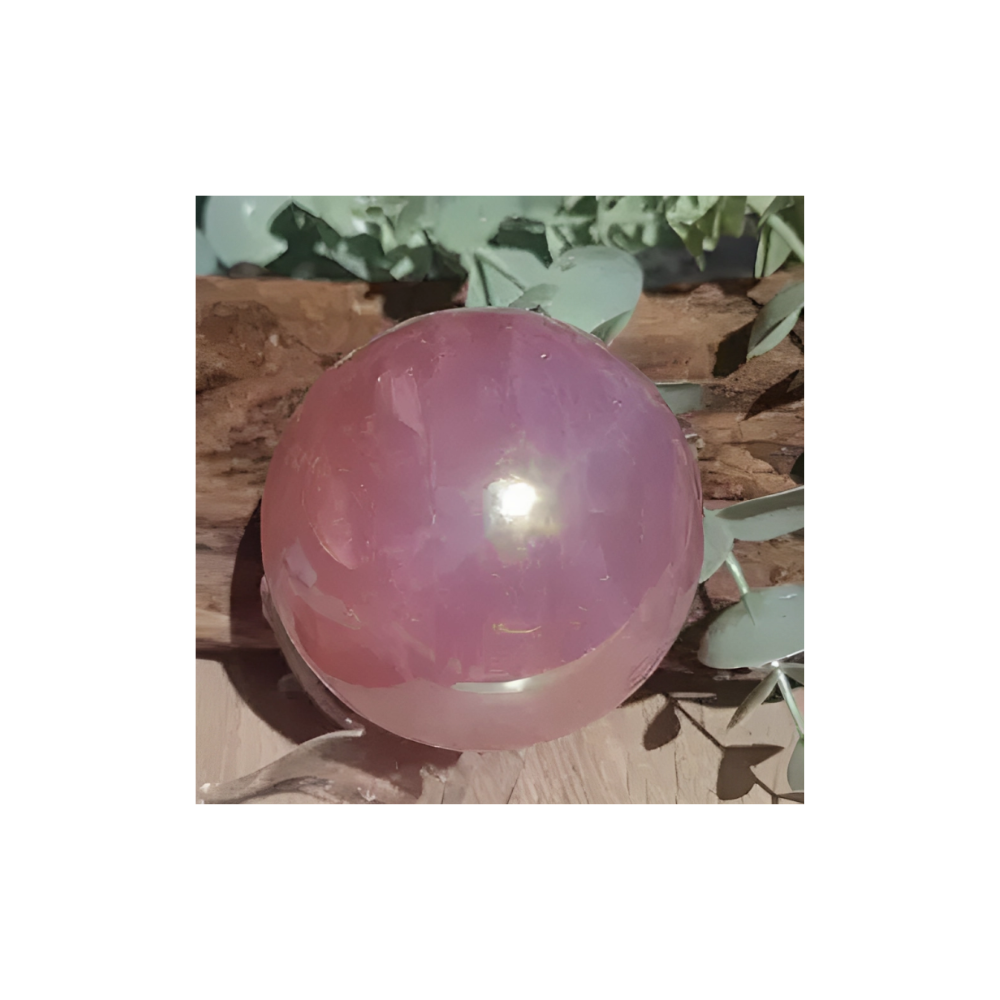 Coated in rainbow aura, this rose quartz is a statement piece.