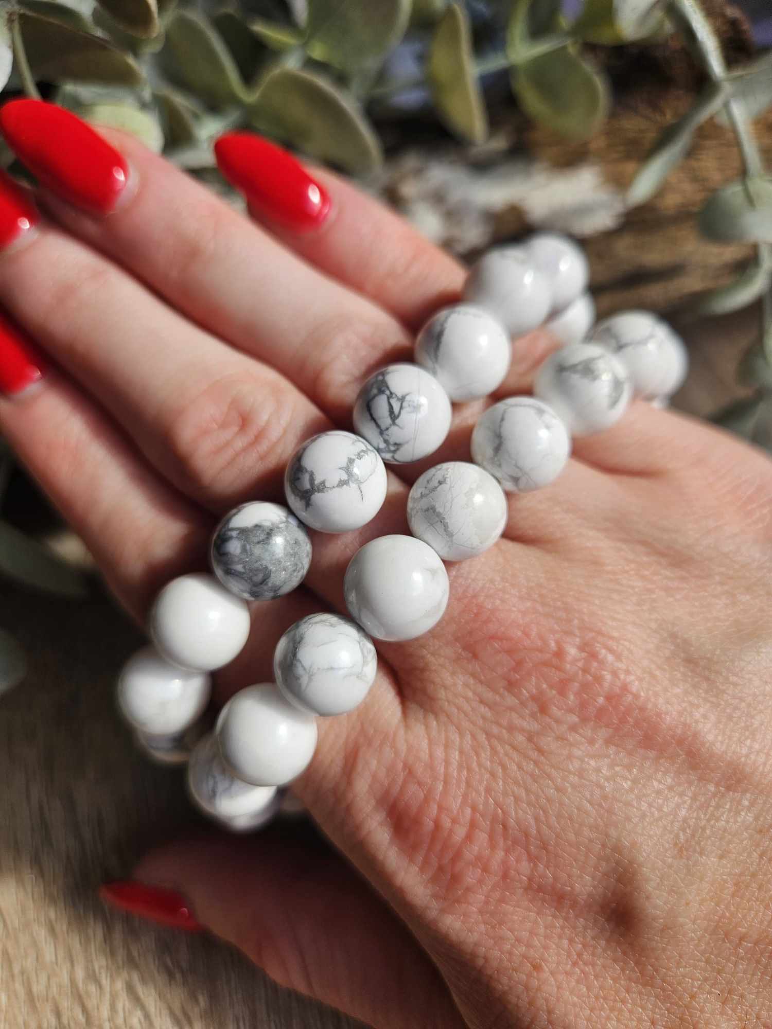 WHITE HOWLITE 10MM BEAD BRACELET.